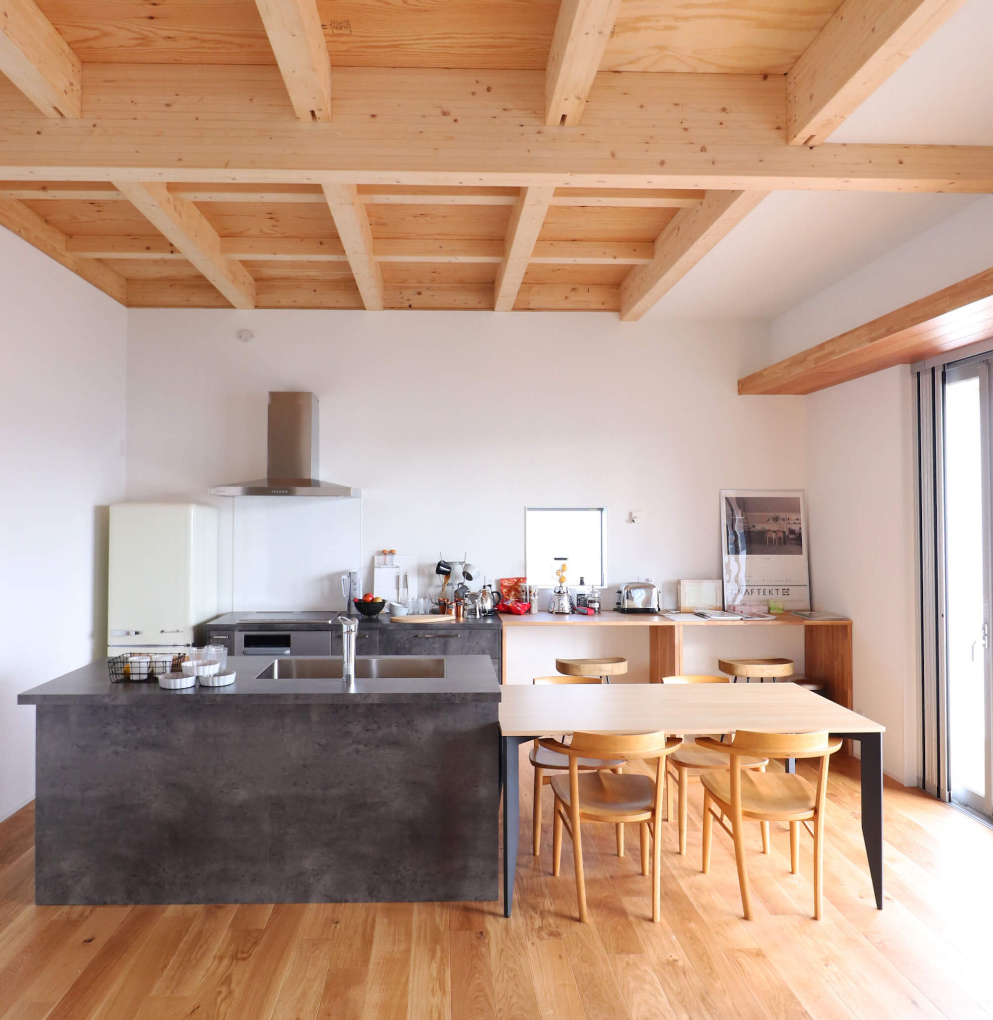 一級建築士と自社大工が織りなす「大空間設計」を実際に体験いただけるモデルハウスです。備え付けているキッチンやインテリアは、キッチン専用メーカーのグラフテクトの商品を採用しております。